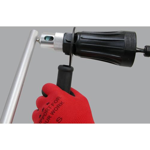 [ข้อควรระวัง] ● สวมแว่นตานิรภัยเมื่อทำงาน ●หลังจากเสร็จสิ้นการโลดโผนแล้ว ตรวจสอบให้แน่ใจว่าได้ปลดเพลาออกแล้ว ●ไม่สามารถใช้หมุดย้ำสแตนเลส Φ6.4มม.