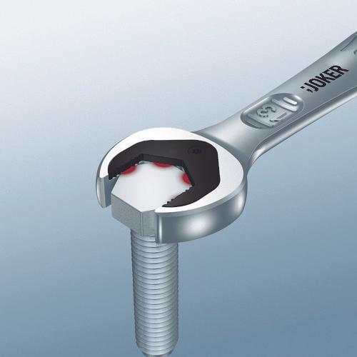[คุณสมบัติ] ● ปลายทั้งสองด้านของหัวประแจวงล้อผสม "JOKER" เป็นประแจปากตายที่มีขนาดต่างกัน ●น็อตและสลักเกลียวไม่หลุดเนื่องจากโครงสร้างแผ่นพิเศษของส่วนประแจ ●สลักเกลียวสามารถสอดเข้าไปด้านข้างในพื้นที่แคบโดยมีประแจคั่นกลาง และสามารถหมุนสลักเกลียวได้ด้วยแรงบิดสูงในขณะที่ใช้แรงกดจากด้านบน ● โครงสร้าง "ฐานสิบหกคู่" ของชิ้นส่วนประแจสามารถหมุนสลักเกลียวที่เลียหรือขึ้นสนิมซึ่งไม่สามารถหมุนได้ด้วยประแจธรรมดา ● ทำให้เป็นจริงมุมกลับของ 30 องศาทีละน้อย