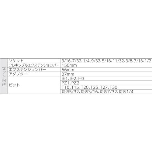 [Specifications] ● มุมแทรก (มม.): 6.35 ● เนื้อหาที่จับ: Cyclops วงล้อ "โลหะ" (004003) ● เนื้อหาชุด (จุด): 28 ● ขนาดตัวเรือน (มม.) ส่วนหน้า: 185 ● ขนาดตัวเรือน (มม.) ความลึก: 75 ● ขนาดตัวเรือน (มม.) ความสูง: 37 ● อะแดปเตอร์ (37 มม.) ● แถบขยาย (56 มม.) ● ซ็อกเก็ต (3/16, 7/32, 1/4, 9/32, 5/16, 11/32, 3 / 8, 7/16, 1/2) ● บิต +1, +2, +3, PZ1, PZ2, T10, T15, T20, T25, T27, T30, ด้านตรงข้าม 5/32 ● แถบขยาย (150 มม.)