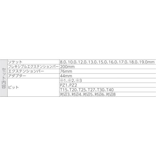 [Specifications] ● มุมแทรก (มม.): 9.5 ● เนื้อหาที่จับ: Cyclops วงล้อ "โลหะ" คันโยกเปลี่ยน (004034)) ● เนื้อหาชุด (จุด): 29 ● ขนาดตัวเรือน (มม.) ส่วนหน้า: 245 ● ขนาดตัวเรือน (มม.) ) ความลึก: 100 ● ขนาดตัวเรือน (มม.) ความสูง: 40 ● อะแดปเตอร์ (44 มม.) ● แถบขยาย (76 มม.) ● ซ็อกเก็ต (8.0, 10.0, 11.0, 12.0, 13.0, 15.0, 16.0, 17.0, 18.0, 1 ● บิต + 1, +2, +3, PZ1, PZ2, T15, T20, T25, T27, T30, T40, ความกว้างของแฟลต 3, ความกว้างของแฟลตบาร์ส่วนขยาย (200 มม.)