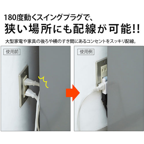 ปลั๊กแบบสวิงที่ขยับได้ 180 องศาช่วยให้เดินสายไฟในแนวตั้งได้อย่างเรียบร้อย ทำให้มีประโยชน์มากแม้ในพื้นที่แคบ