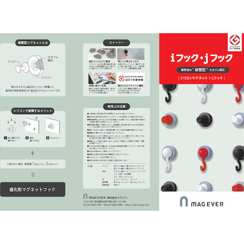 Magever แม่เหล็กซิลิโคน i-Hook สีขาวแม่เหล็กตะขอแม่เหล็ก Neodymium 1-0139HOOK-IW MAGEVER