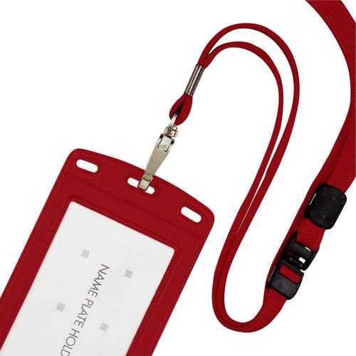 OP ป้ายชื่อห้อยนามบัตรหนังแนวตั้ง 1 ชิ้น สีแดง