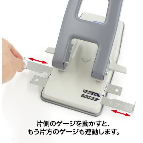 [คุณสมบัติ]● เมื่อเกจที่ด้านหนึ่งขยับ เกจที่อีกด้านหนึ่งจะเชื่อมโยงด้วย ทำให้ง่ายต่อการจัดตำแหน่งกึ่งกลางของกระดาษ