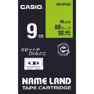 ตัวอักษรสีดำ 9 มม. บนเทปสีเขียวเรืองแสงสำหรับแบรนด์ CASIO