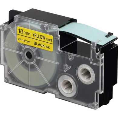 ตัวอักษรสีดำ 18 มม. บนเทปสีเหลืองเรืองแสงสำหรับแบรนด์ชื่อ CASIO