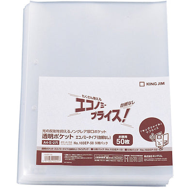 KING JIM กระเป๋าโปร่งใส ประหยัด - 30 รูไม่มีตัวยึด (50 แผ่น) 103EPP-50 KING JIM