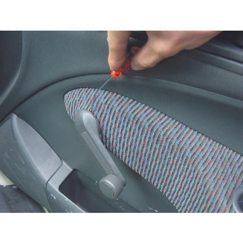 [คุณสมบัติ] ● ออกแบบมาให้ถอดสลักได้ง่ายด้วยมุมดัดของเพลาที่เหมาะสมที่สุด ●เป็นเครื่องมือพิเศษสำหรับถอดสลักด้านในมือจับประตูรถ
