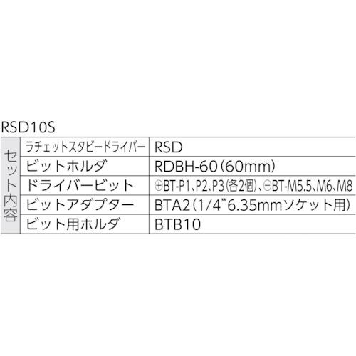 [เนื้อหาในเซ็ต/อุปกรณ์เสริม] ● ไขควงปากแบนแบบวงล้อ 1 ตัว ● ตัวจับดอก RDBH-60 (60 มม.) 1 ตัว ● ดอกไขควง P1, P2, P3 อย่างละ 2 ตัว, -5.5, 6, 8 อย่างละ 2 ตัว ● ตัวต่อบิต BTA2 1 ตัว