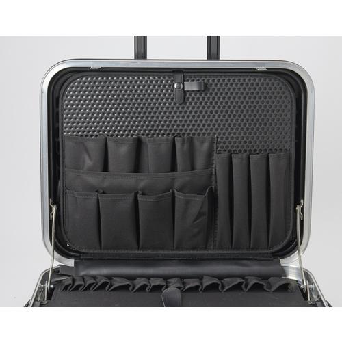 [Tính năng]● Khi bị khóa ở 45° và 90°, nắp có bản lề được gắn vào, vì vậy hộp sẽ không bị rơi xuống bất kể hộp được mở ở vị trí nào. ● Hộp đựng có tay cầm kéo dài tích hợp và bánh xe giúp di chuyển rất thuận tiện.
