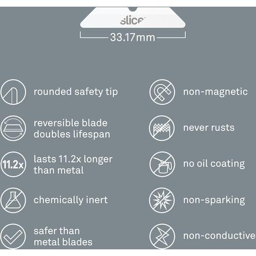 [Tính năng] ● Lưỡi cắt được làm bằng gốm. ●Khả năng chống mài mòn, chống gỉ, kháng hóa chất và chịu nhiệt tuyệt vời. ●Vì có tính mài mòn cao nên sắc bén và bền lâu kể cả khi sử dụng trong thời gian dài. ●Lưỡi cắt có cấu trúc ở cả hai đầu, một mảnh có thể được sử dụng hai lần. ● Các lưỡi dao thay thế rất dễ thay thế và bạn có thể thực hiện việc này một cách an toàn và thoải mái chỉ trong vài chục giây.