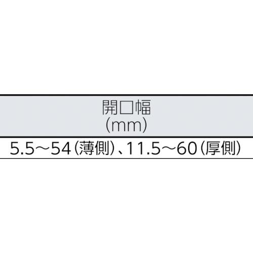 [Thông số kỹ thuật] ●Tổng chiều dài (mm): 124 ●Chiều rộng mở (mm): 5,5 đến 54 (mặt mỏng), 11,5 đến 60 (mặt dày) ●Chiều dài tay cầm (mm): 110 ●Số lượng kiện hàng (miếng): 5