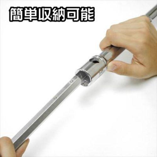 [Tính năng] ● Cờ lê chữ thập có tay cầm có thể thu vào. ●Bằng cách thay đổi điểm chèn của tay cầm, nó có thể được sử dụng làm cờ lê chéo, cờ lê chữ T và cờ lê chữ L. ●Bằng cách sử dụng bộ chuyển đổi 1/2DR đi kèm và gắn ổ cắm, bạn có thể sử dụng nhiều kích cỡ bu lông và đai ốc khác nhau. ●Vì có thể cất giữ tay cầm bên trong thiết bị chính nên có thể mang theo một cách thông minh và thuận tiện cho việc cất giữ.