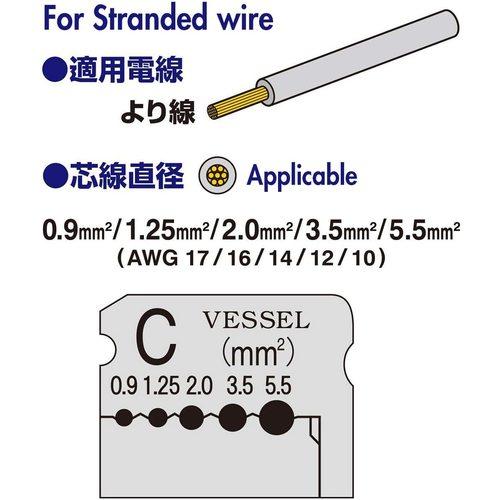 [Thông số kỹ thuật] ●Tổng chiều dài (mm): 170 ●Dây có thể sử dụng (mm): 0,9/1,25/2,0/3,5/5,5 ●Dây có thể sử dụng ([[MM2]]): 0,9/1,25/2,0/3,5/5,5