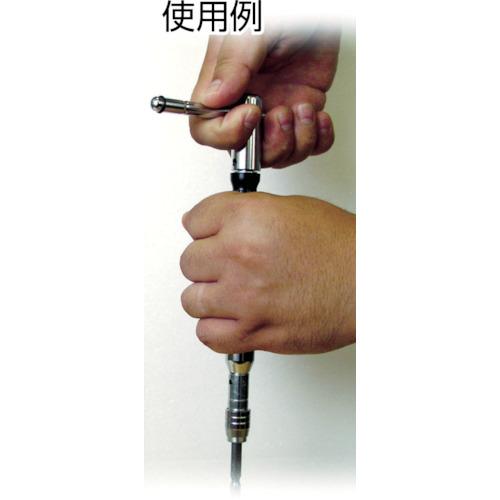 [Tính năng]● Có thể sử dụng các bit có trục 6,35 mm. ●Đầu mũi là loại mâm cặp một chạm giúp đầu mũi không bị rơi. ● Có thể di chuyển và tháo thanh T-bar. ●Khi giữ tay cầm, chỉ có trục quay.
