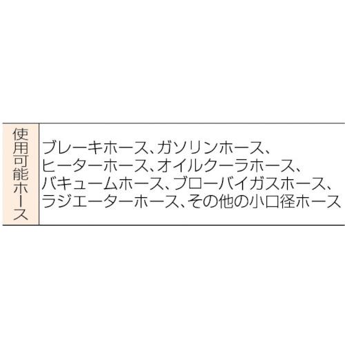 [Tính năng] ● Nút chặn một chạm cho chất lỏng và khí chảy qua tất cả các ống được sử dụng trong ô tô và máy móc. ●Thích hợp để kẹp ống ở những không gian hẹp như khoang động cơ.