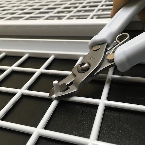 [Thận trọng] ● Không sử dụng cho mục đích nào khác ngoài cắt. ●Ngoài ra, không cạy lưỡi cắt. ●Lưỡi dao có thể bị gãy và các mảnh vụn có thể bay ra. ●Đeo kính bảo hộ khi làm việc. ●Cất giữ ở nơi an toàn ngoài tầm với của trẻ nhỏ.