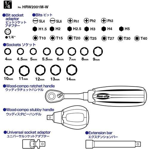 Bộ cờ lê đầu cắm VESSEL Woody HRW2001M-W Drive 1/4"