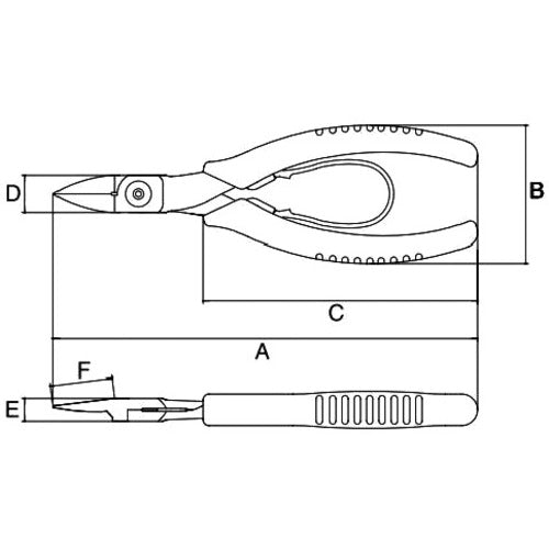 [Thông số kỹ thuật 2] ● Có lò xo nhựa ● Lưỡi phẳng ● Kích thước (mm): A = 167 / B = 48 / C = 105 / D = 15 / E = 9 / F = 22