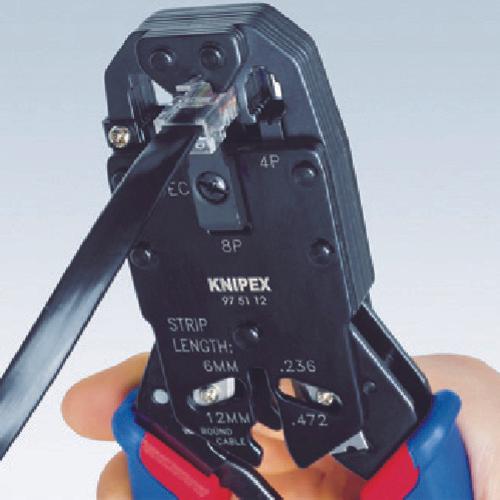 [应用] ● 用于电话带状电缆的切割和剥皮。 ●用于压接RJ10(宽7.65mm)型、RJ11/12(宽9.65mm)型、RJ45(宽11.68mm)型6芯和8芯洋式插头。