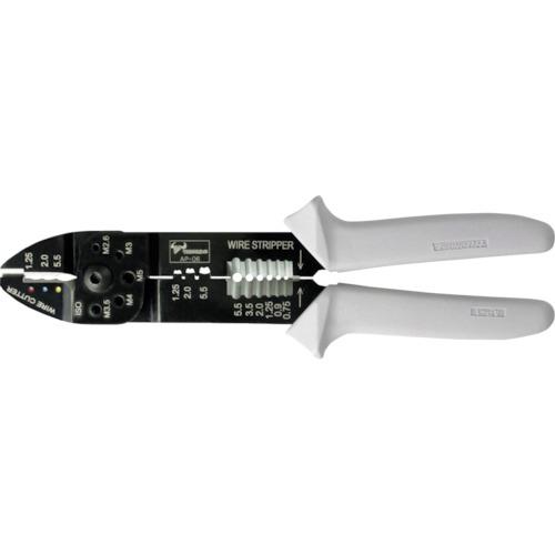 [特点] ● 配备电气配线所需的5种功能(剪线钳、绝缘端子压接、螺栓/螺钉切割、开筒式端子压接、剥线钳)。 ● 弹性把手,手感舒适。
