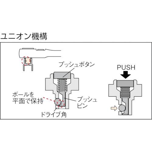 [特点] ●长柄型。它非常适合施加大量扭矩的工作。 ●采用活接机构,防止插座意外掉落。 ●通过采用一体式爪,与本公司现有产品相比,头部厚度减少了20%。 ●采用36齿齿轮实现良好的进给角度,齿轮由两处爪支撑,强度比传统产品提高30%。