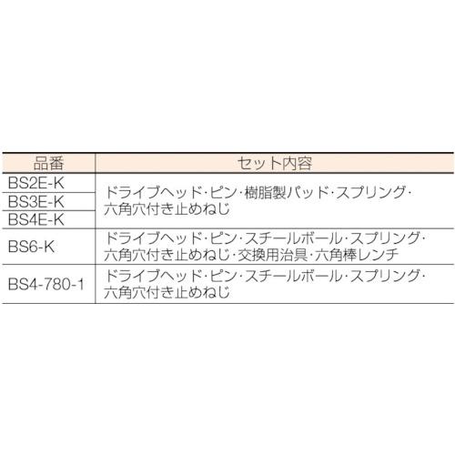 【规格】 ●对应机种:BS2E、BS2L ●套装内容:驱动头、销、垫、弹簧、止动螺丝