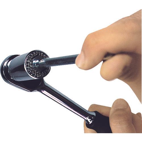 [特点] ●也可抓取平头螺栓和英制螺钉。 ●轻松拧紧和松开几乎所有螺栓、螺母、钩螺钉等。 ●插座内的54个钢销可牢固地夹紧三角形、方形、六角螺母、梅花螺钉、钩形螺钉、吊环螺栓等以及多边形螺钉和螺母。 ●最大螺母推入深度为9.5mm。 ●夹具扭矩为248Nm(18mm时)。
